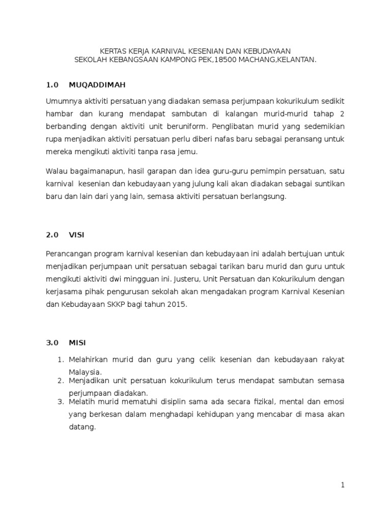 Kertas Kerja Karnival Kesenian Dan Kebudayaan Pdf